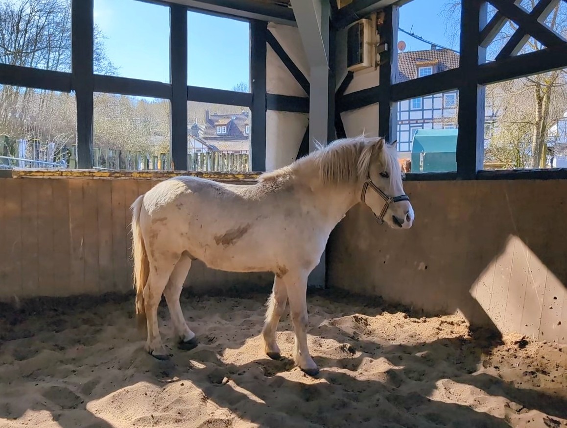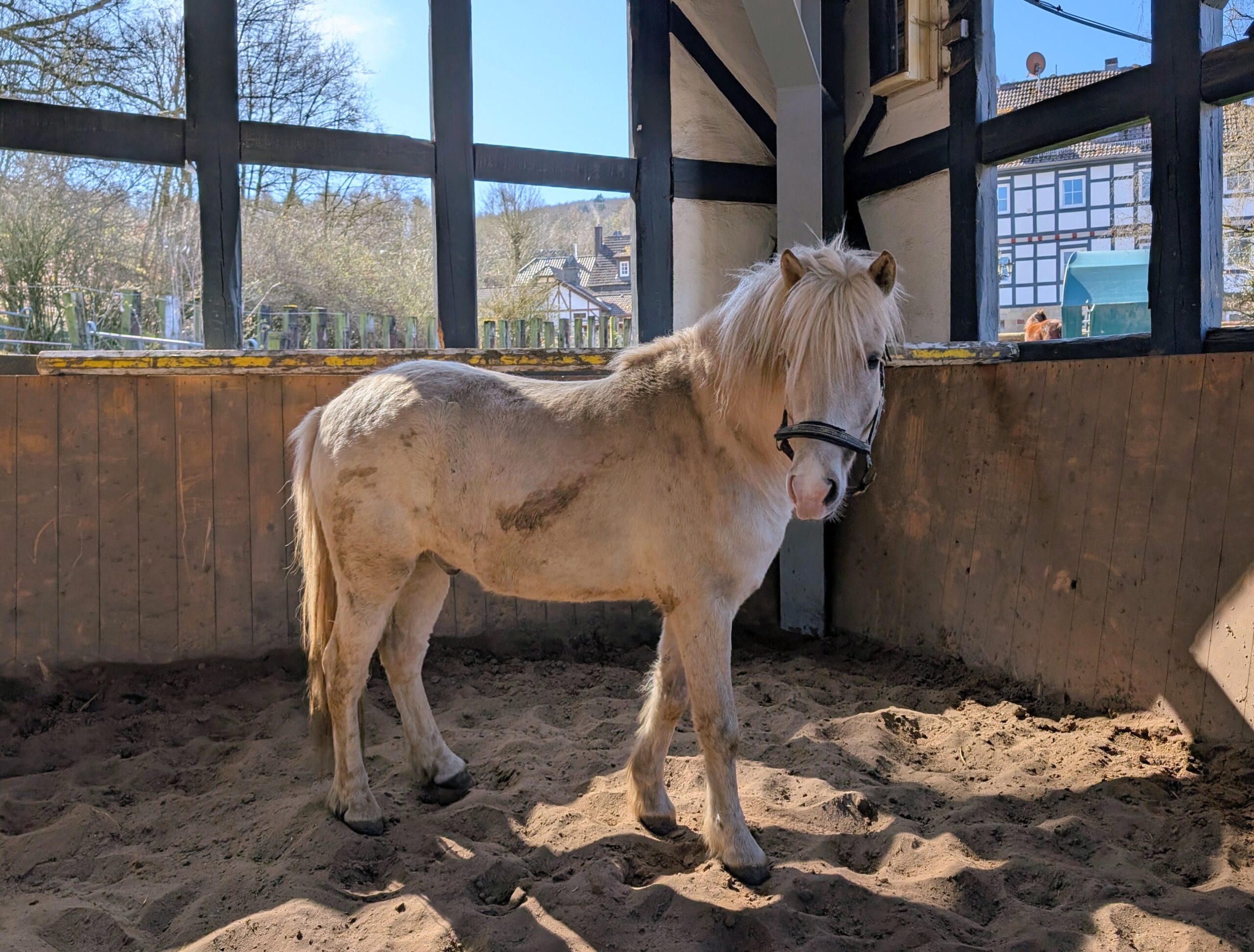 Freilaufend zeigt er klare Gänge und auch eine gute Töltveranlagung. Er scheint viergängig veranlagt zu sein.