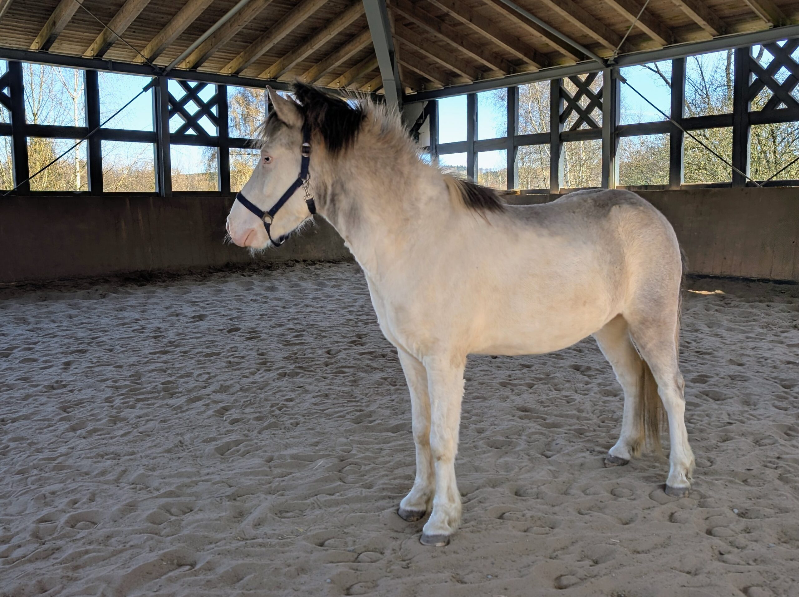 Er ist sehr neugierig und dem Menschen zugewandt. Er kennt das Jungpferde-ABC und wird jetzt von Katha in Grundausbildung genommen.